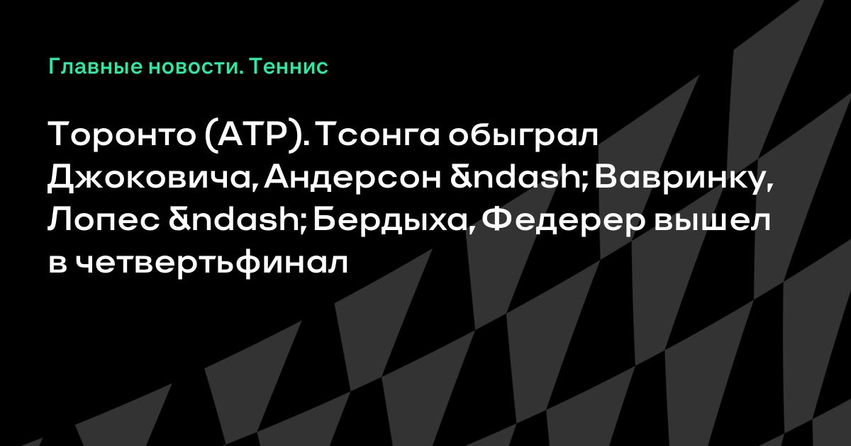 Торонто (АТР). Тсонга обыграл Джоковича, Андерсон – Вавринку, Лопес – Бердыха, Федерер вышел в четвертьфинал