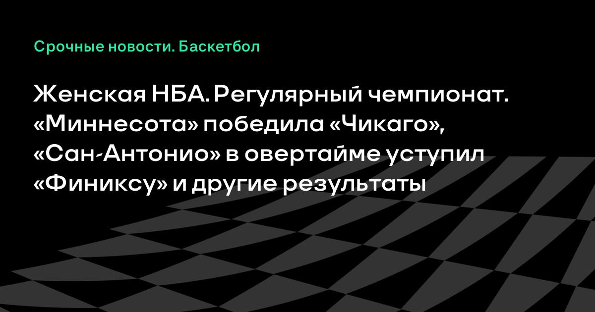 Женская НБА. Регулярный чемпионат. «Миннесота» победила «Чикаго», «Сан-Антонио» в овертайме уступил «Финиксу» и другие результаты