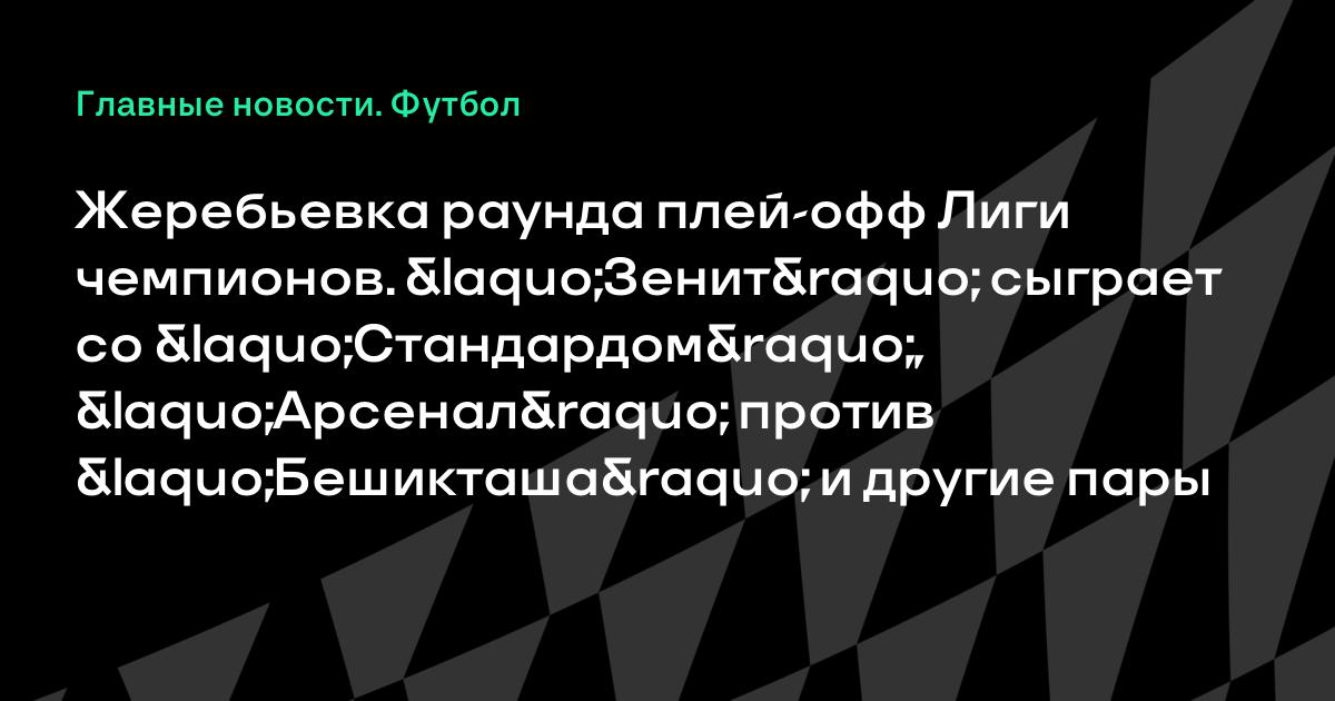 Жеребьевка раунда плей-офф Лиги чемпионов. «Зенит» сыграет со «Стандардом», «Арсенал» против «Бешикташа» и другие пары