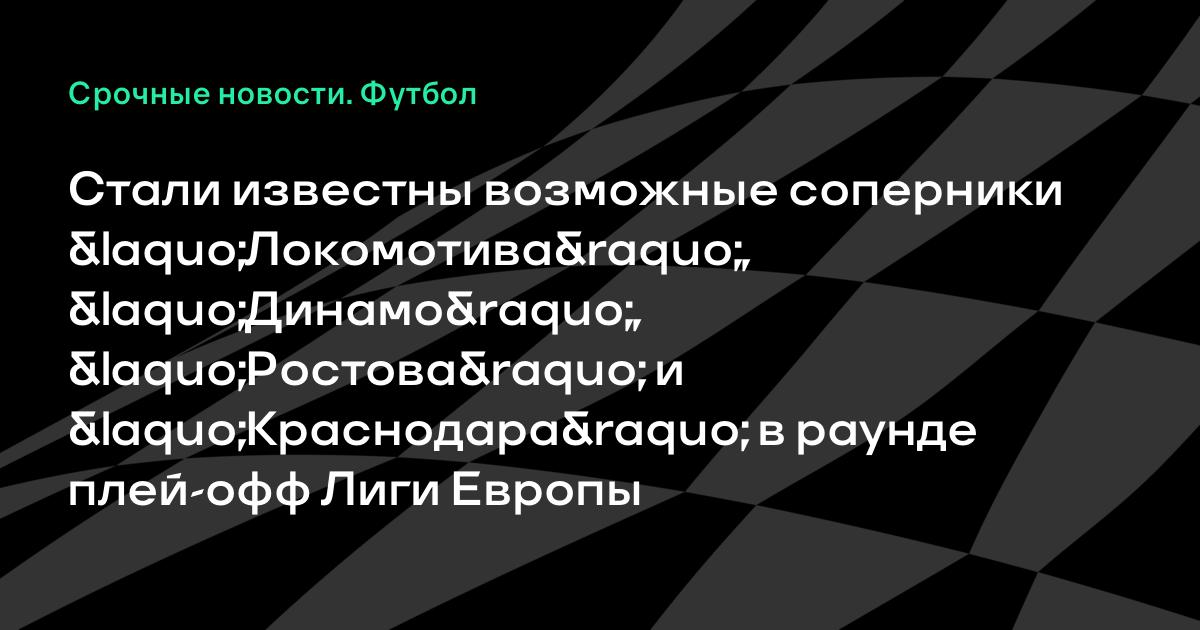 Стали известны возможные соперники «Локомотива», «Динамо», «Ростова» и «Краснодара» в раунде плей-офф Лиги Европы