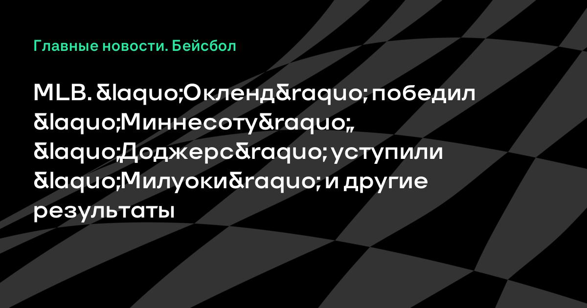 MLB. «Окленд» победил «Миннесоту», «Доджерс» уступили «Милуоки» и другие результаты