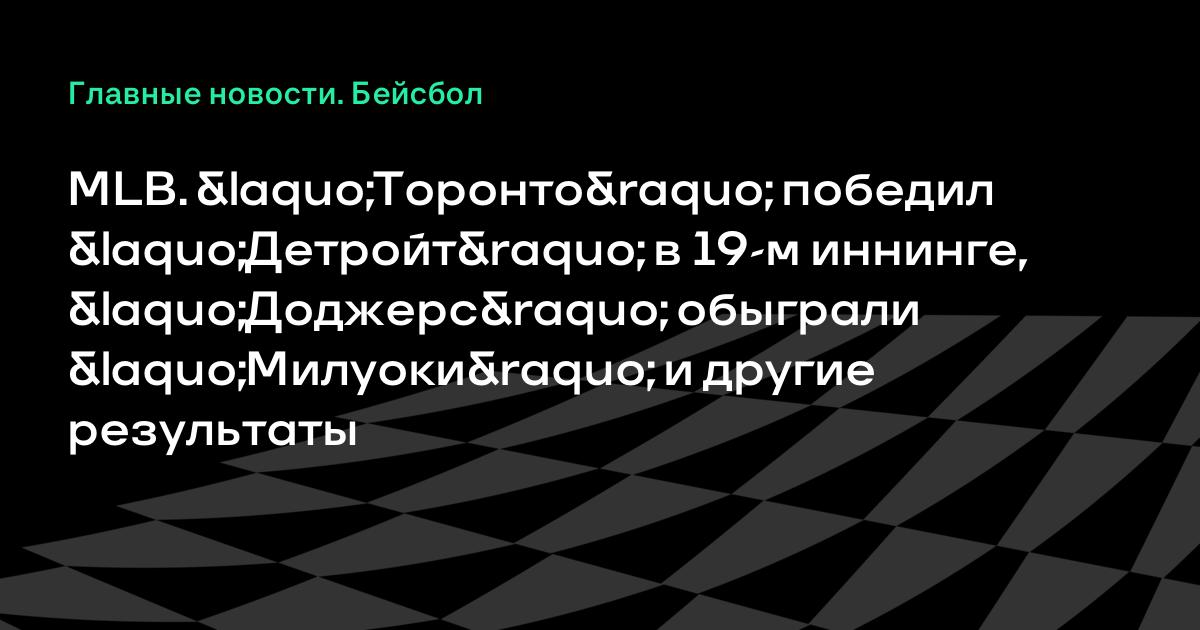 MLB. «Торонто» победил «Детройт» в 19-м иннинге, «Доджерс» обыграли «Милуоки» и другие результаты