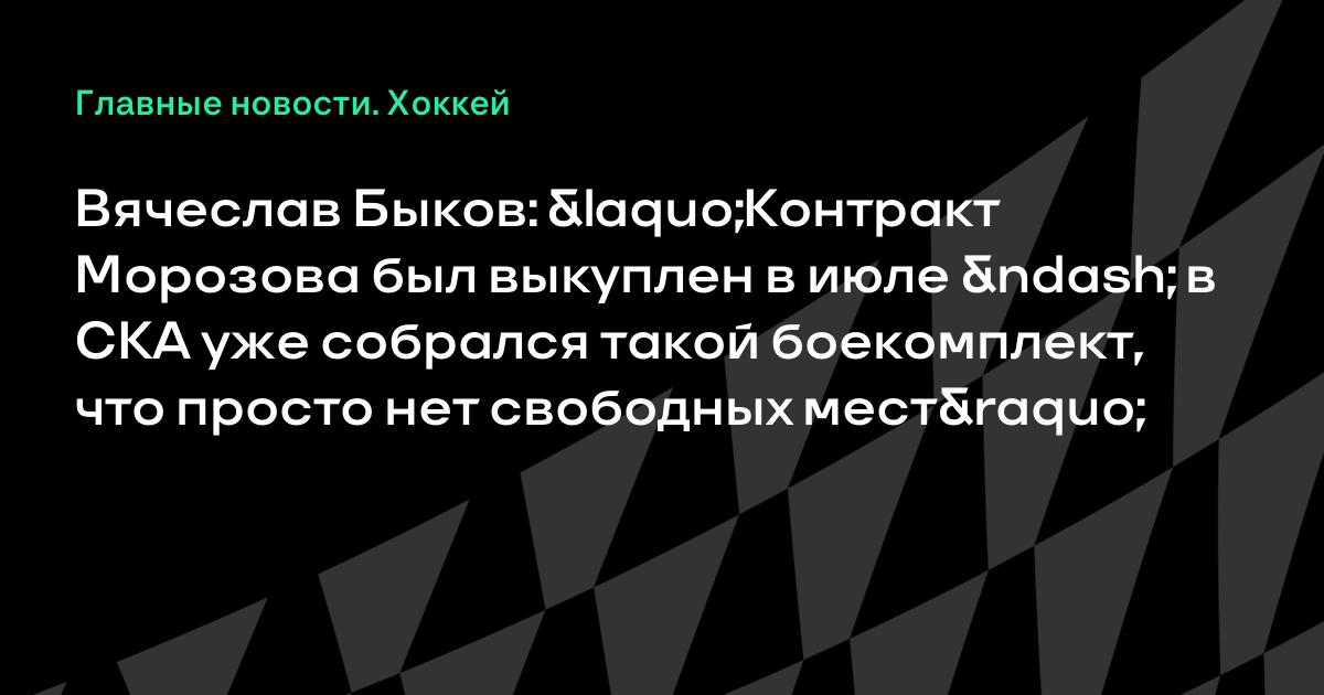Вячеслав Быков: «Контракт Морозова был выкуплен в июле – в СКА уже собрался такой боекомплект, что просто нет свободных мест»