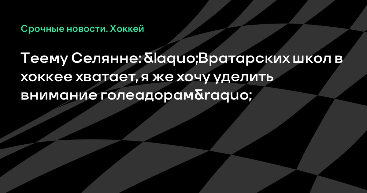 Теему Селянне: «Вратарских школ в хоккее хватает, я же хочу уделить внимание голеадорам»