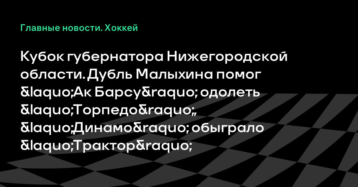 Кубок губернатора Нижегородской области. Дубль Малыхина помог «Ак Барсу» одолеть «Торпедо», «Динамо» обыграло «Трактор»