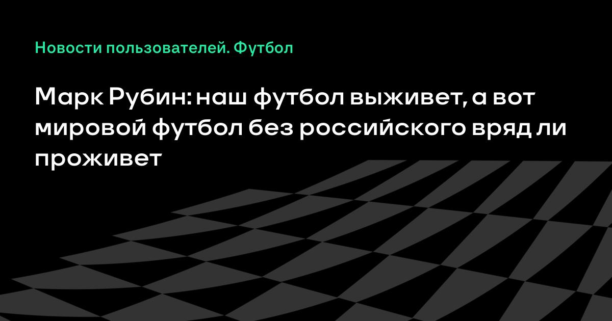 Марк Рубин: наш футбол выживет, а вот мировой футбол без российского вряд ли проживет