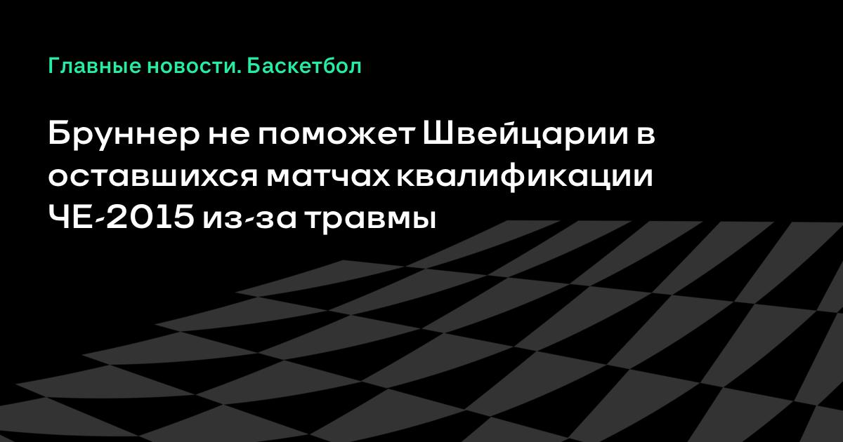 Тяжелый форвард сборной Швейцарии Грег Бруннер не поможет национальной команде в трех оставшихся матчах квалификации Евробаскета-2015 из-за травмы плеча, сообщает RSI.
