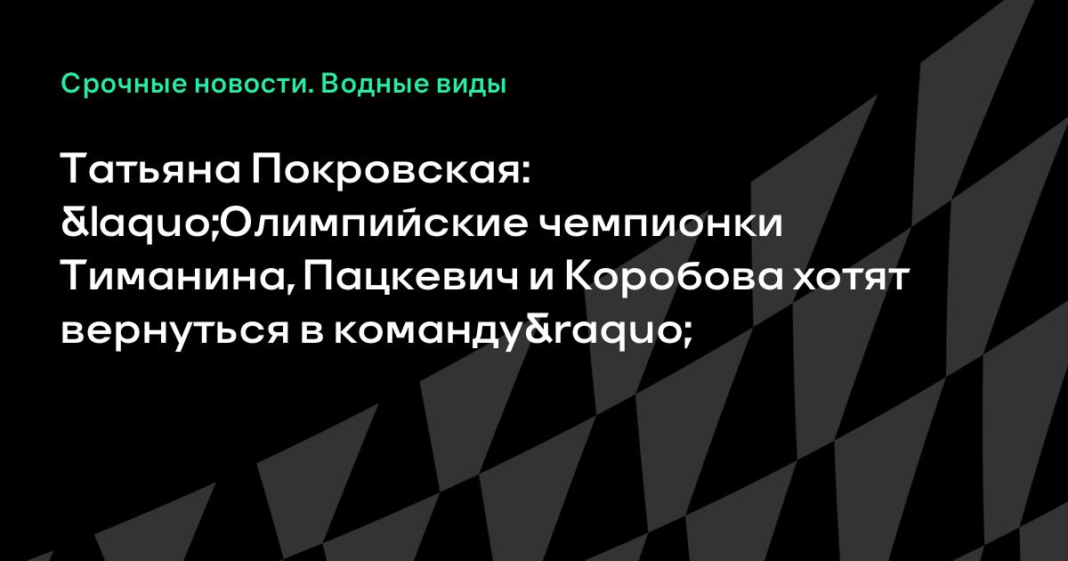 Главный тренер сборной России по синхронному плаванию Татьяна Покровская рассказала, что олимпийские чемпионки Александра Пацкевич, Анжелика Тиманина, Дарья Коробова намерены вернуться в команду.