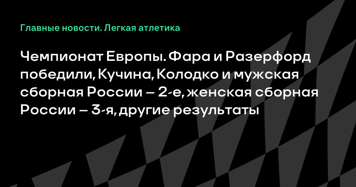 Чемпионат Европы. Фара и Разерфорд победили, Кучина, Колодко и мужская сборная России – 2-е, женская сборная России – 3-я, другие результаты