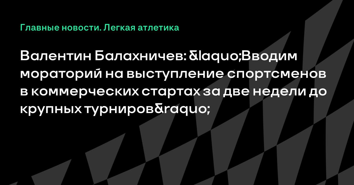 Мы не против участия спортсменов в коммерческих соревнованиях. В самое ближайшее время мы примем ряд жестких решений, которые будут касаться менеджеров спортсмена. Менеджер берет на себя все функции во время выступления спортсмена за границей, в том числе – тренерские и медицинские. Также с будущего года вводим мораторий на выступление российских спортсменов в коммерческих стартах за две недели до крупных соревнований сезона», – рассказал Балахничев в интервью агентству «Весь спорт».