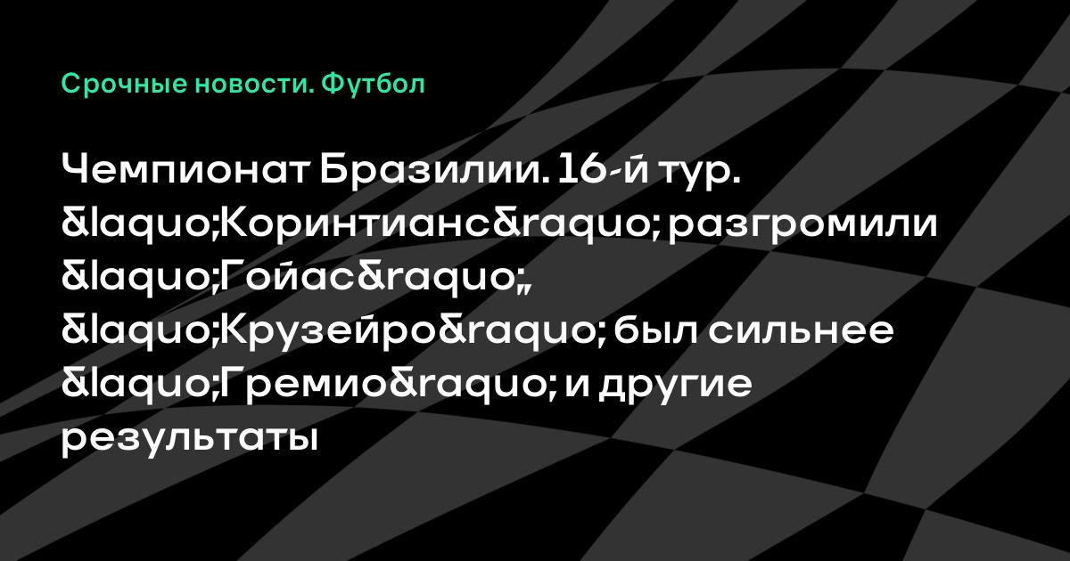 Чемпионат Бразилии. 16-й тур. «Коринтианс» разгромили «Гойас», «Крузейро» был сильнее «Гремио» и другие результаты
