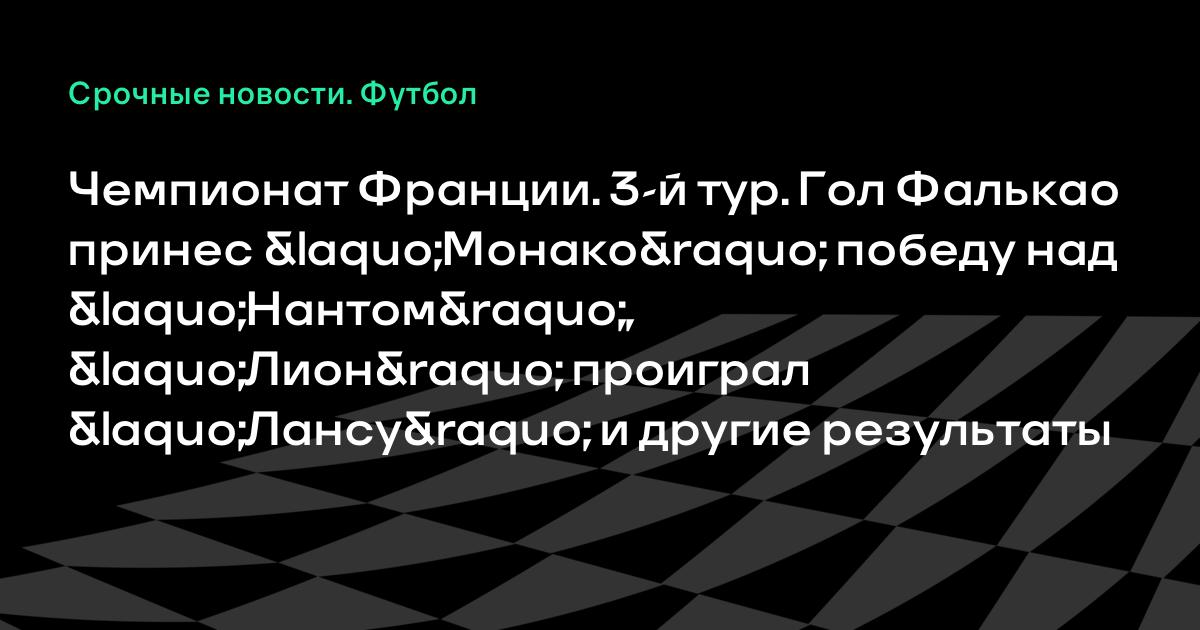 Чемпионат Франции. 3-й тур. Гол Фалькао принес «Монако» победу над «Нантом», «Лион» проиграл «Лансу» и другие результаты