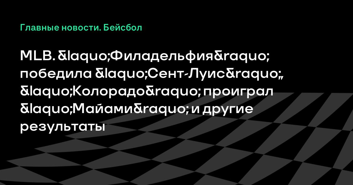MLB. «Филадельфия» победила «Сент-Луис», «Колорадо» проиграл «Майами» и другие результаты