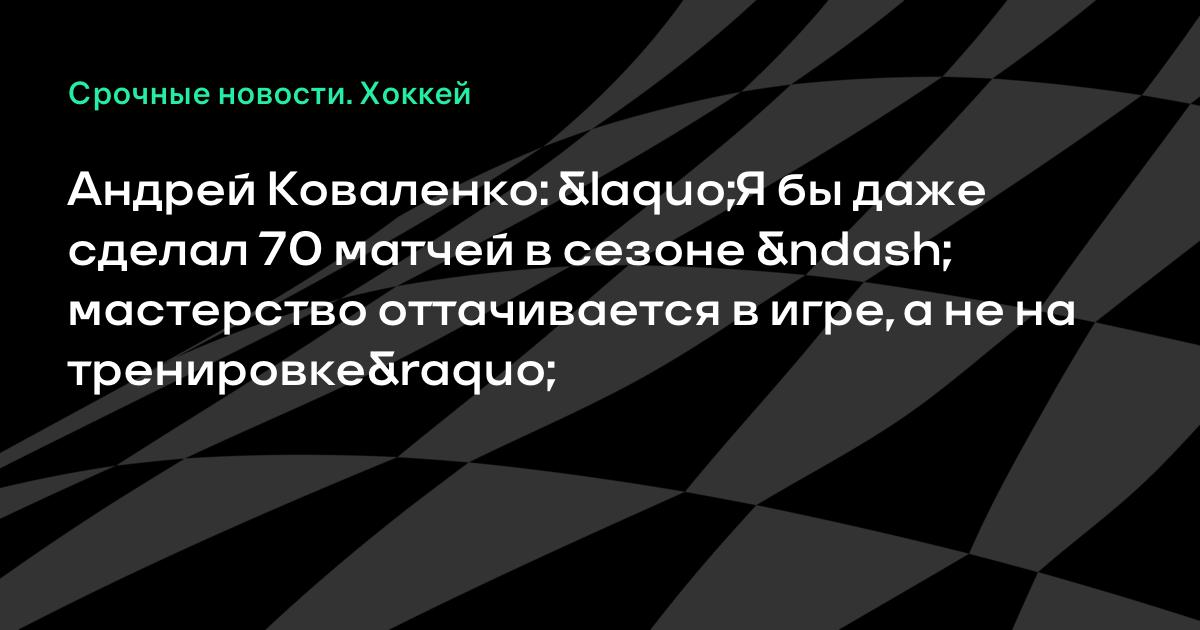 Андрей Коваленко: «Я бы даже сделал 70 матчей в сезоне – мастерство оттачивается в игре, а не на тренировке»