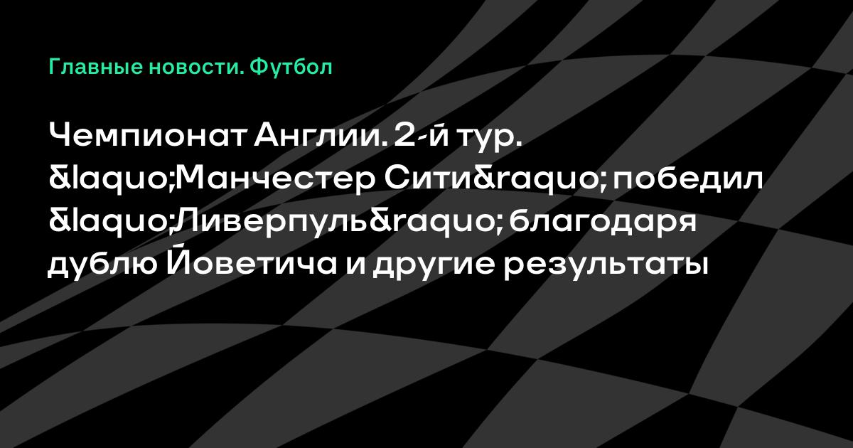 Чемпионат Англии. 2-й тур. «Манчестер Сити» победил «Ливерпуль» благодаря дублю Йоветича и другие результаты