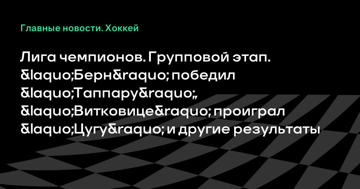 Лига чемпионов. Групповой этап. «Берн» победил «Таппару», «Витковице» проиграл «Цугу» и другие результаты
