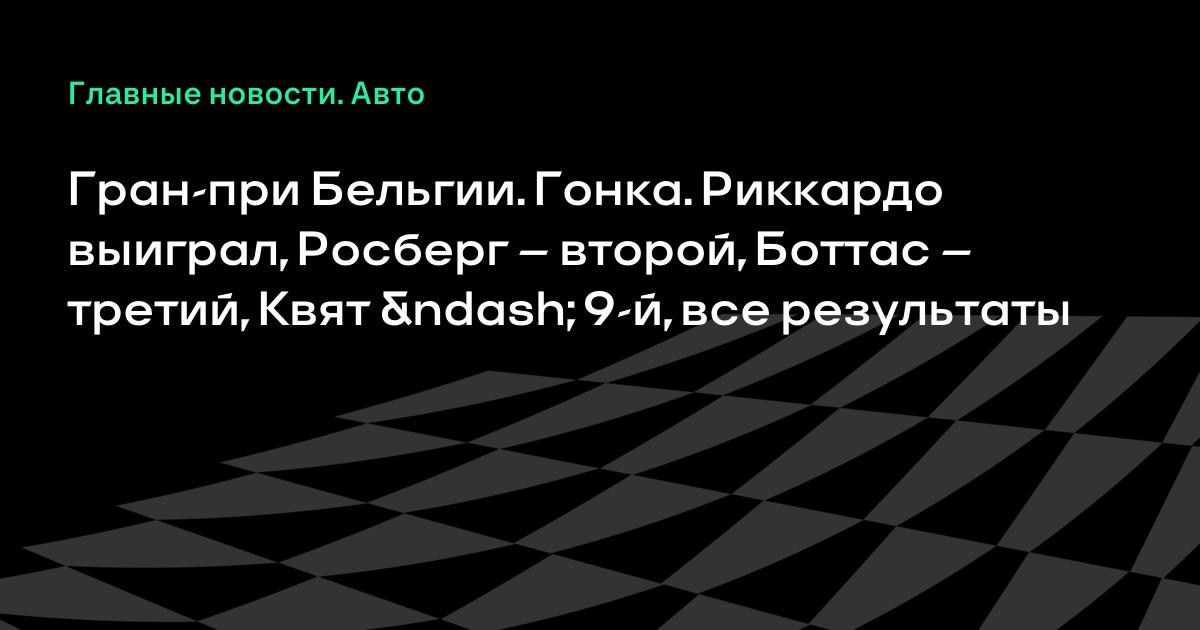 Гран-при Бельгии. Гонка. Риккардо выиграл, Росберг – второй, Боттас – третий, Квят – 9-й, все результаты