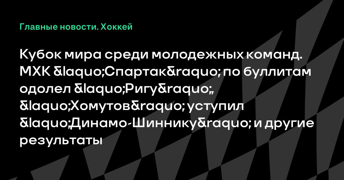Кубок мира среди молодежных команд. МХК «Спартак» по буллитам одолел «Ригу», «Хомутов» уступил «Динамо-Шиннику» и другие результаты