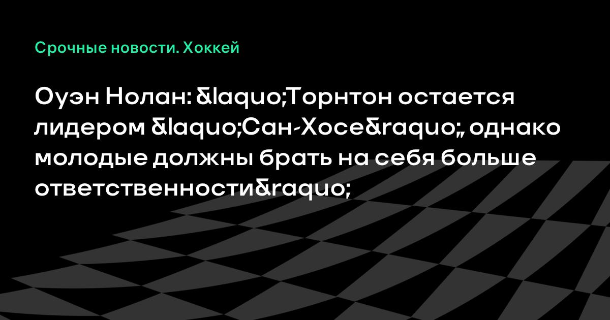 Оуэн Нолан: «Торнтон остается лидером «Сан-Хосе», однако молодые должны брать на себя больше ответственности»