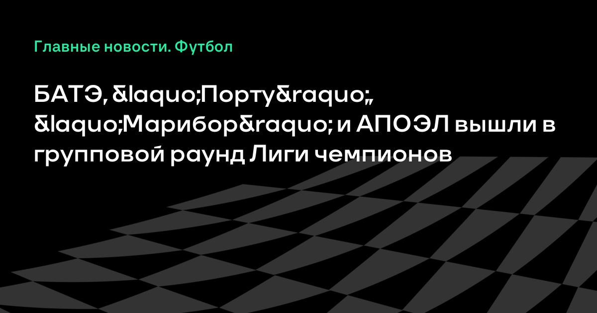 БАТЭ, «Порту», «Марибор» и АПОЭЛ вышли в групповой раунд Лиги чемпионов