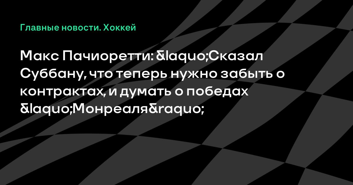 Макс Пачиоретти: «Сказал Суббану, что теперь нужно забыть о контрактах, и думать о победах «Монреаля»