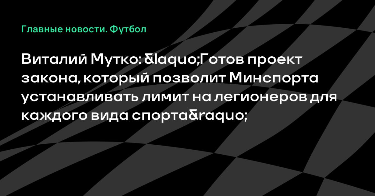 Министр спорта РФ Виталий Мутко рассказал, что министерство будет напрямую регулировать лимит на легионеров в обход спортивных федераций.«Мы готовим вам доклад. Проект закона готов. Потому что если мы отдаем это на откуп спортивным федерациям по ограничению лимита, то, как правило, федерации сложно на это идут.