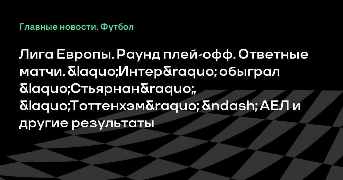 Лига Европы. Раунд плей-офф. Ответные матчи. «Интер» обыграл «Стьярнан», «Тоттенхэм» – АЕЛ и другие результаты