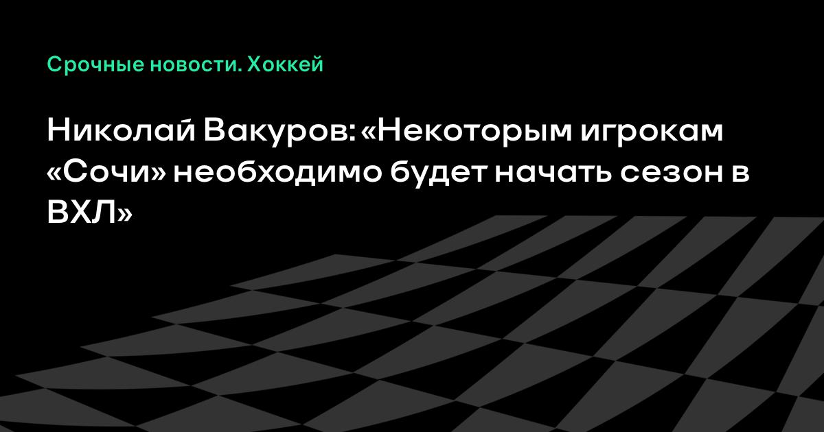 Николай Вакуров: «Некоторым игрокам «Сочи» необходимо будет начать сезон в ВХЛ»