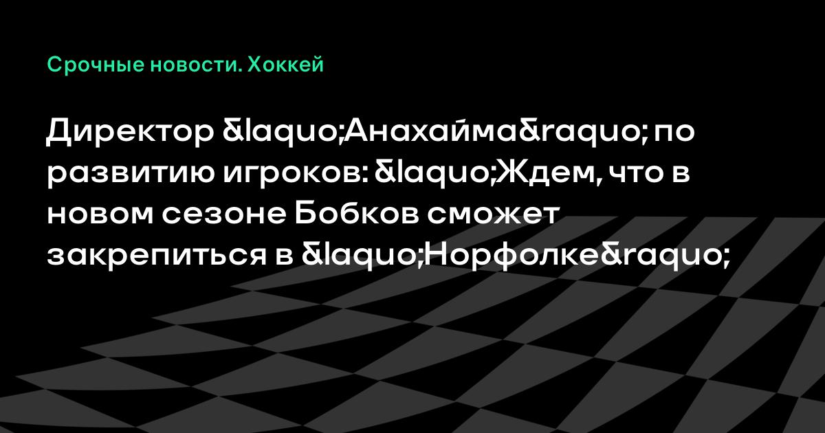 Директор «Анахайма» по развитию игроков: «Ждем, что в новом сезоне Бобков сможет закрепиться в «Норфолке»