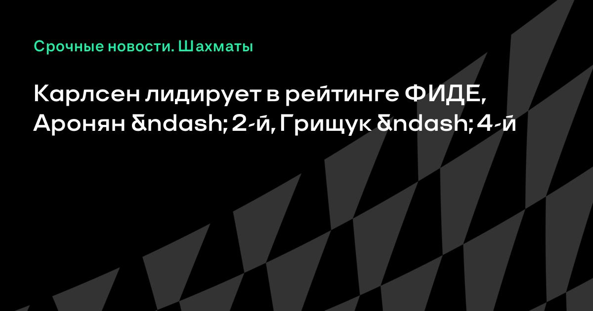 Карлсен лидирует в рейтинге ФИДЕ, Аронян – 2-й, Грищук – 4-й