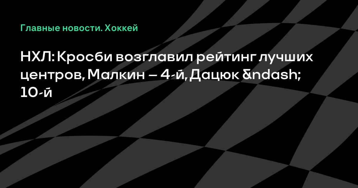 НХЛ: Кросби возглавил рейтинг лучших центров, Малкин – 4-й, Дацюк – 10-й