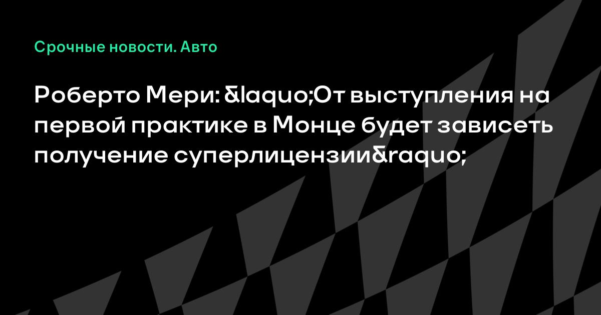 Роберто Мери: «От выступления на первой практике в Монце будет зависеть получение суперлицензии»