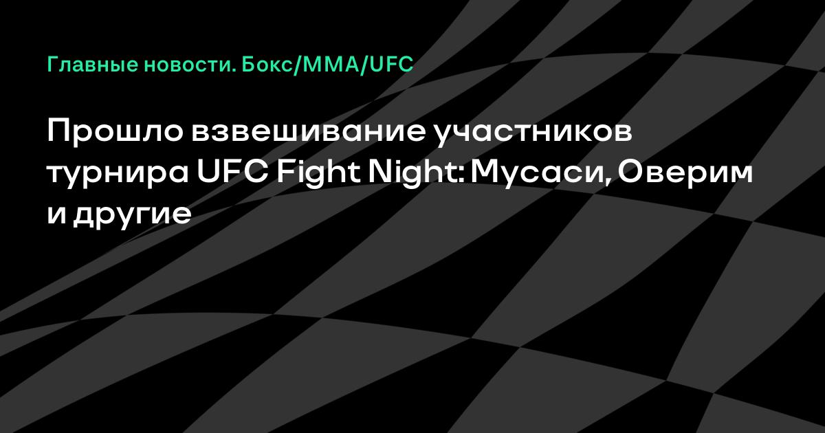 Прошло взвешивание участников турнира UFC Fight Night: Мусаси, Оверим и другие