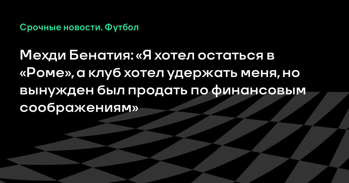 Мехди Бенатия: «Я хотел остаться в «Роме», а клуб хотел удержать меня, но вынужден был продать по финансовым соображениям»