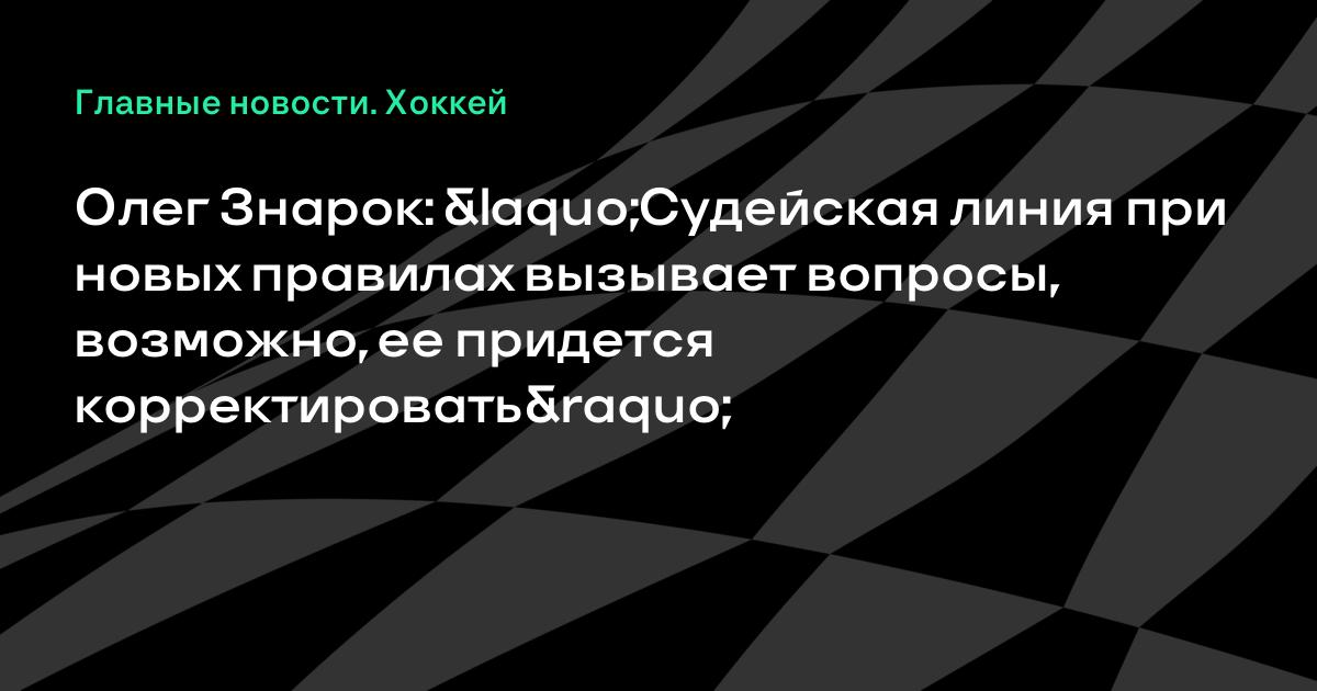 Олег Знарок: «Судейская линия при новых правилах вызывает вопросы, возможно, ее придется корректировать»