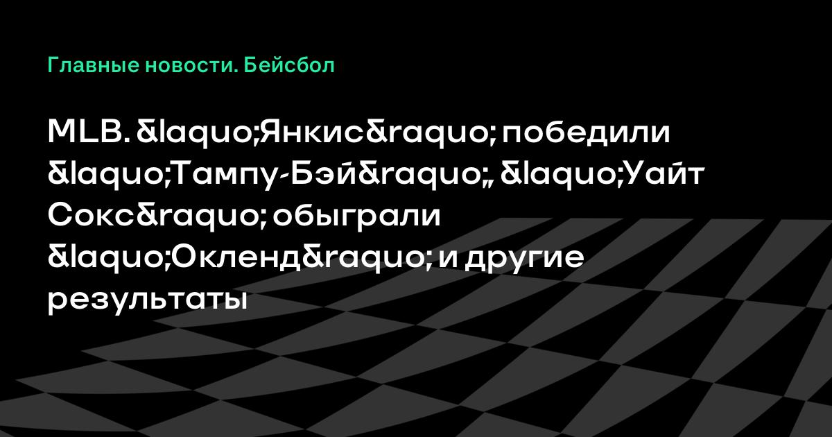 MLB. «Янкис» победили «Тампу-Бэй», «Уайт Сокс» обыграли «Окленд» и другие результаты