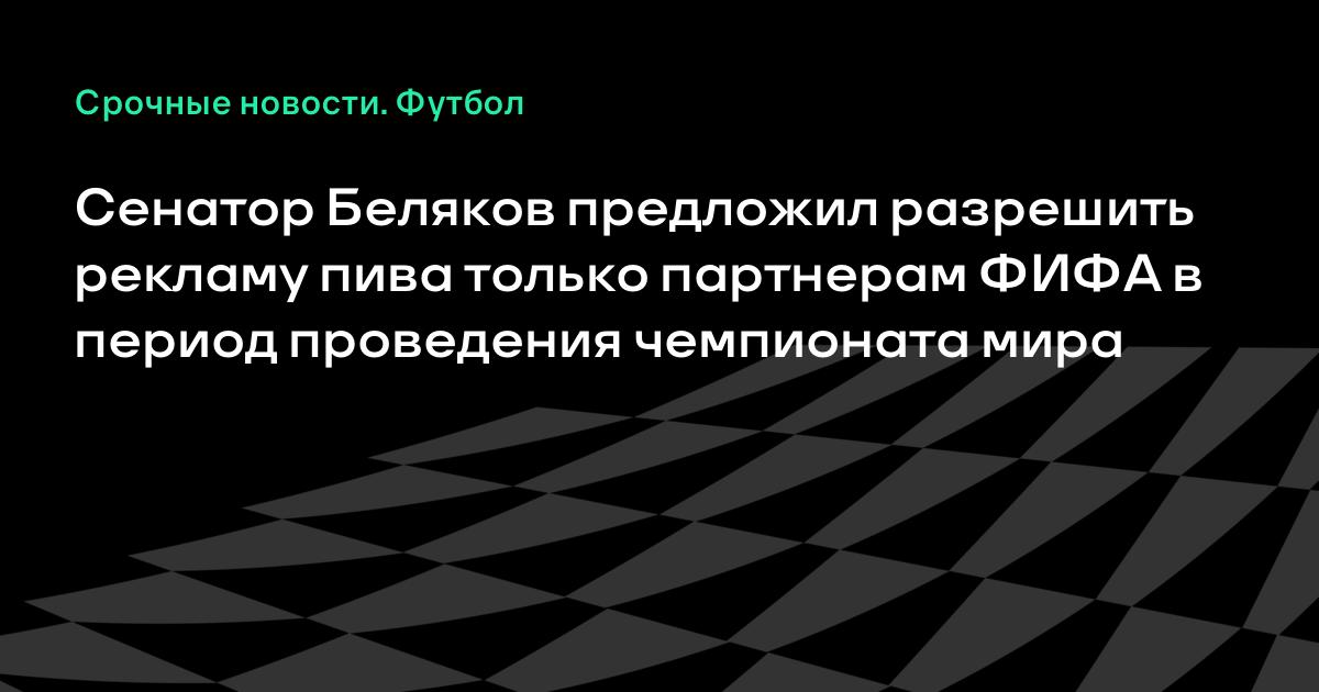 Сенатор Беляков предложил разрешить рекламу пива только партнерам ФИФА в период проведения чемпионата мира