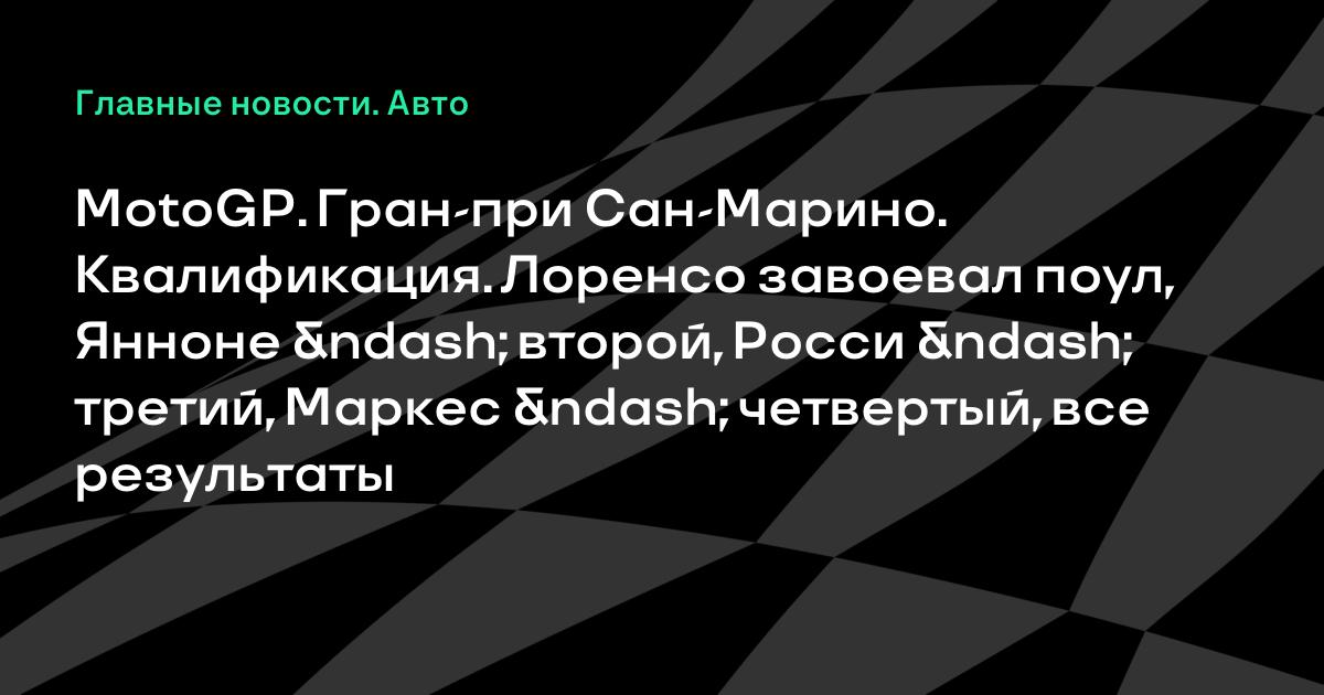 MotoGP. Гран-при Сан-Марино. Квалификация. Лоренсо завоевал поул, Янноне – второй, Росси – третий, Маркес – четвертый, все результаты