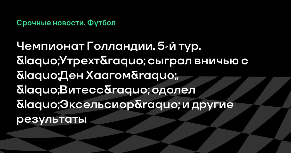 Чемпионат Голландии. 5-й тур. «Утрехт» сыграл вничью с «Ден Хаагом», «Витесс» одолел «Эксельсиор» и другие результаты