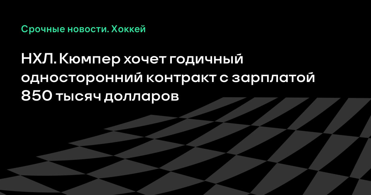 Инсайдер TSN Боб Маккензи рассказал о требованиях вратаря Дарси Кюмпера.Хоккеист хочет подписать годичный односторонний контракт с зарплатой 850 тысяч долларов.