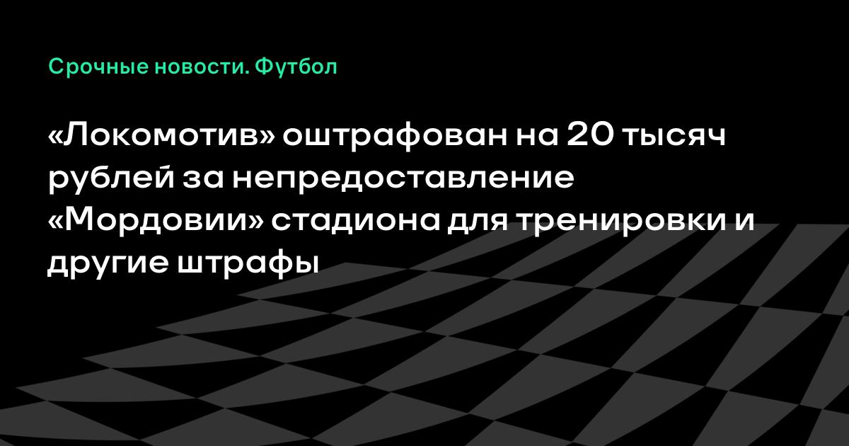 «Локомотив» оштрафован на 20 тысяч рублей за непредоставление «Мордовии» стадиона для тренировки и другие штрафы