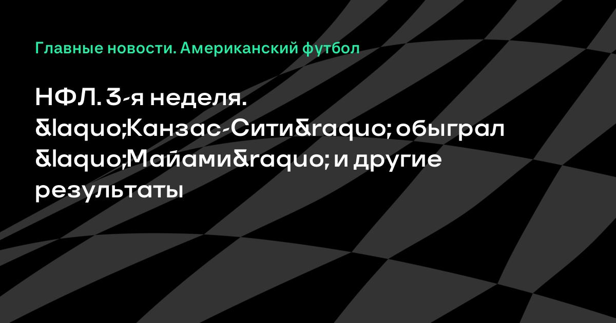 НФЛ. 3-я неделя. «Канзас-Сити» обыграл «Майами» и другие результаты