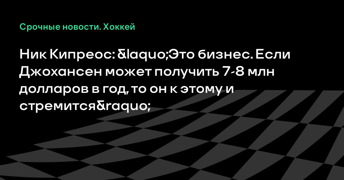 Ник Кипреос: «Это бизнес. Если Джохансен может получить 7-8 млн долларов в год, то он к этому и стремится»