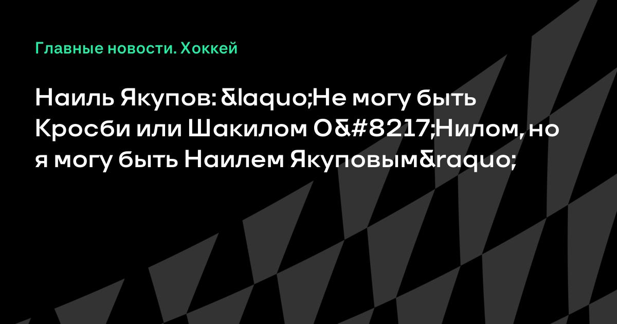 Бог сделал меня таким, какой я есть. Я не могу быть Кросби или Шакилом О’Нилом, но я могу быть Наилем Якуповым, и мы посмотрим, что будет дальше. Обещаю, что буду стараться на сто процентов.
