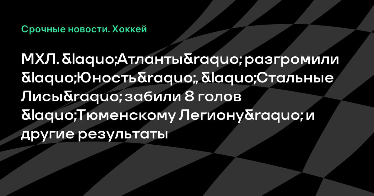МХЛ. «Атланты» разгромили «Юность», «Стальные Лисы» забили 8 голов «Тюменскому Легиону» и другие результаты