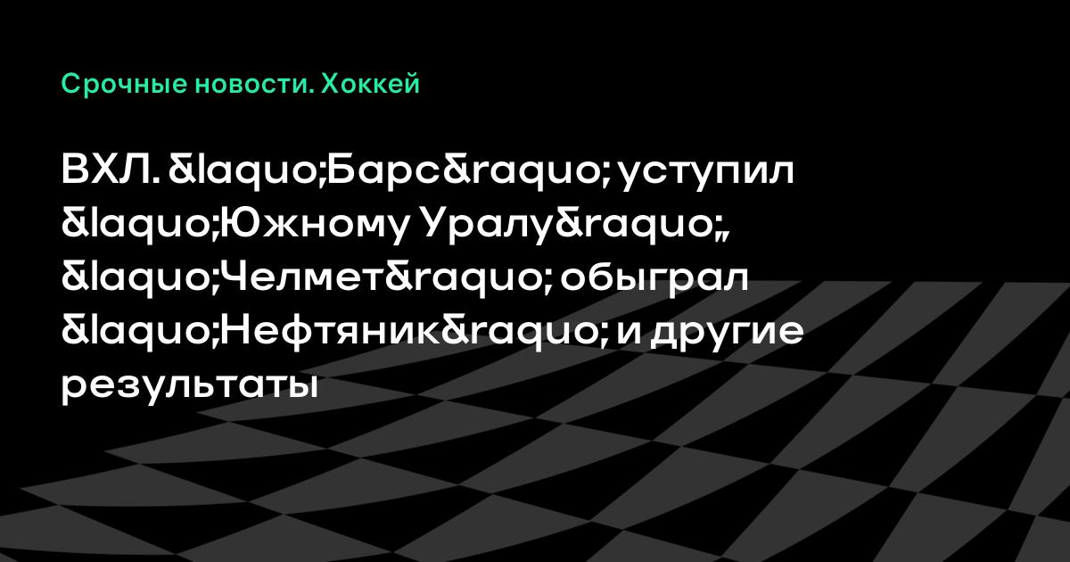 ВХЛ. «Барс» уступил «Южному Уралу», «Челмет» обыграл «Нефтяник» и другие результаты