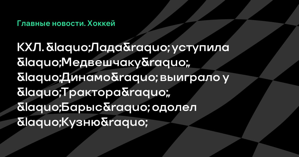 КХЛ. «Лада» уступила «Медвешчаку», «Динамо» выиграло у «Трактора», «Барыс» одолел «Кузню»