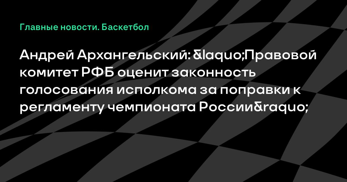 Андрей Архангельский: «Правовой комитет РФБ оценит законность голосования исполкома за поправки к регламенту чемпионата России»