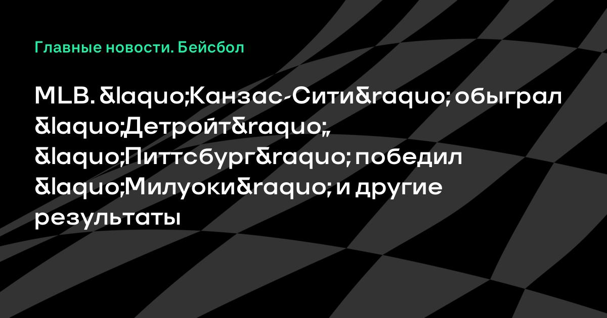 MLB. «Канзас-Сити» обыграл «Детройт», «Питтсбург» победил «Милуоки» и другие результаты