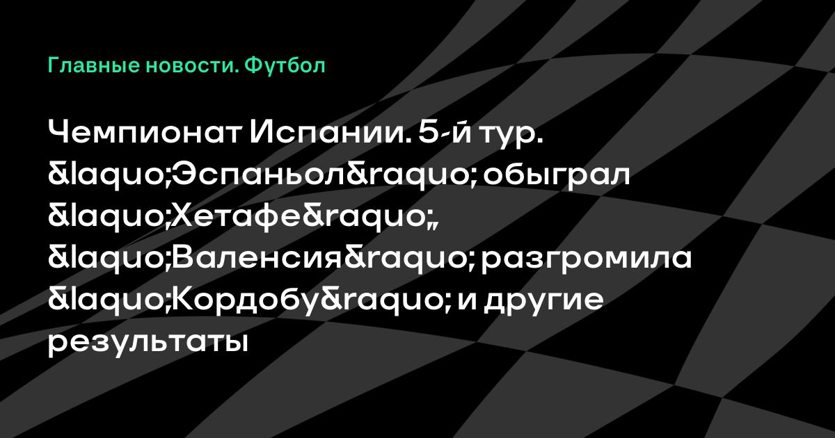 Чемпионат Испании. 5-й тур. «Эспаньол» обыграл «Хетафе», «Валенсия» разгромила «Кордобу» и другие результаты